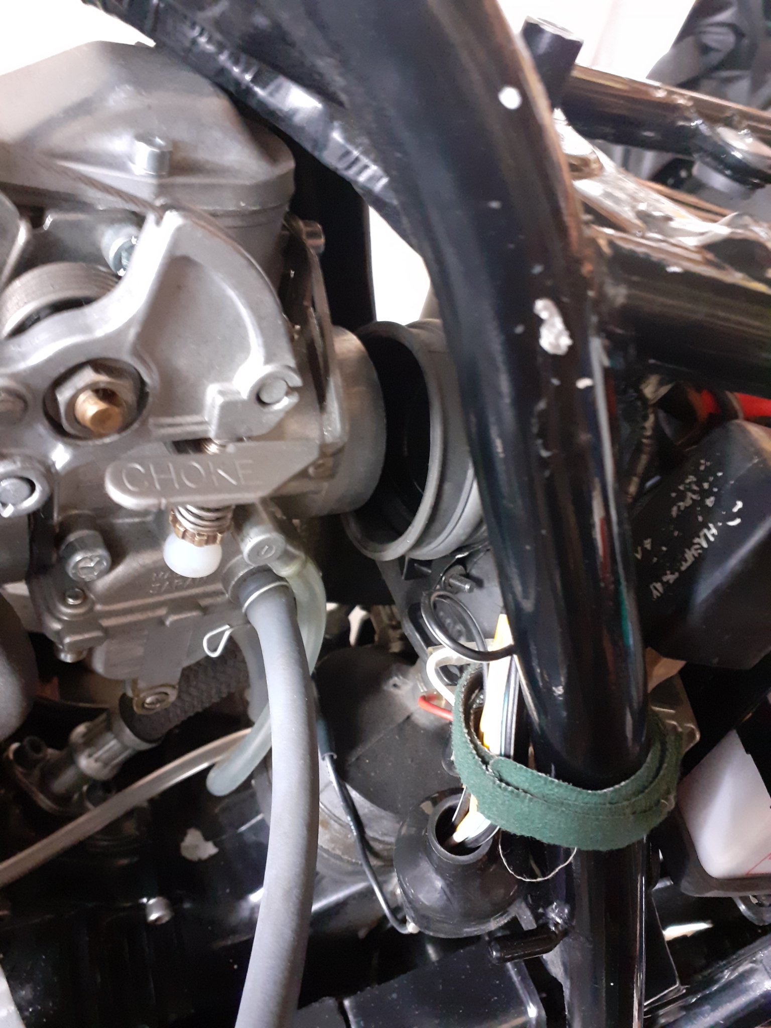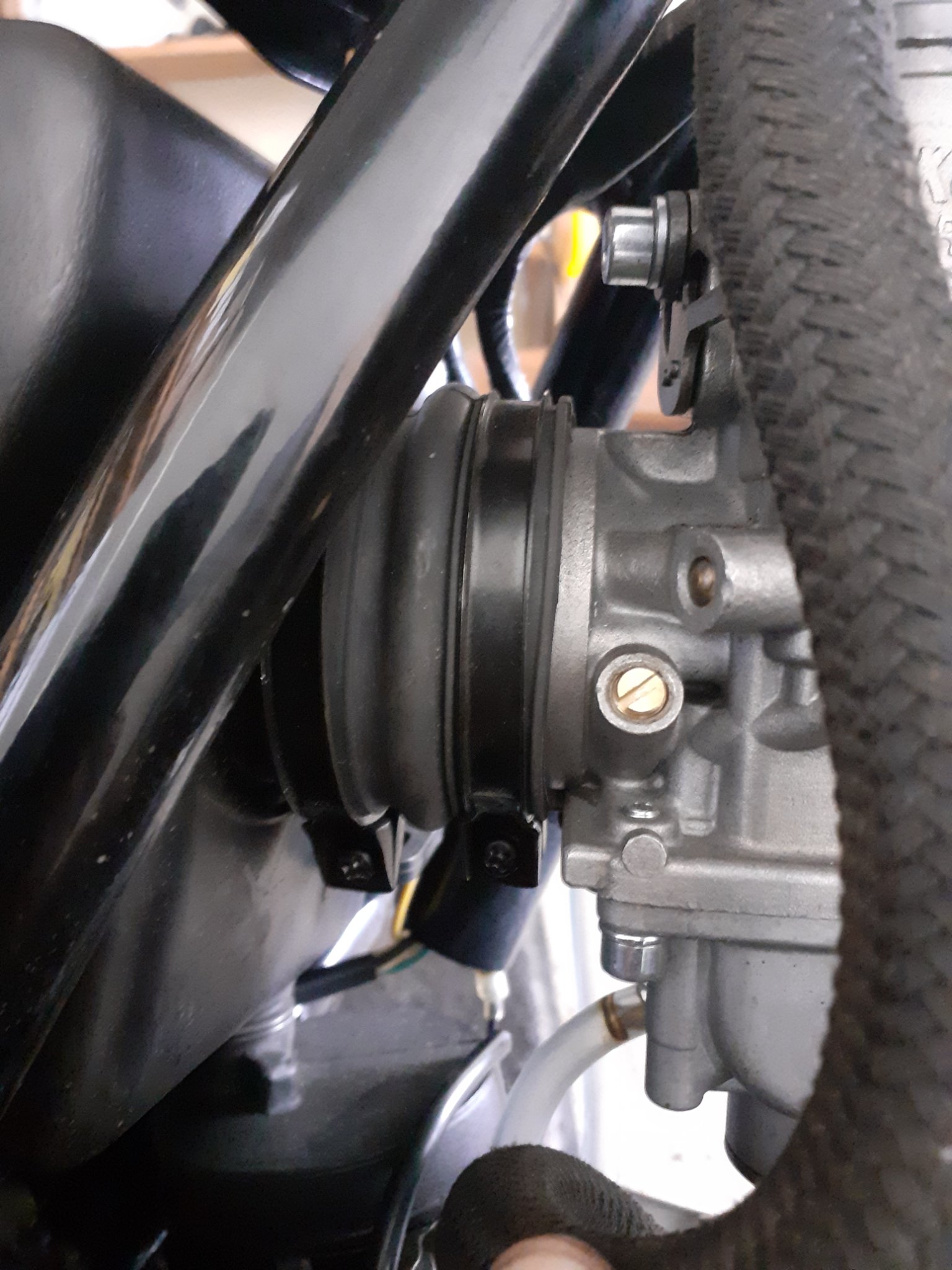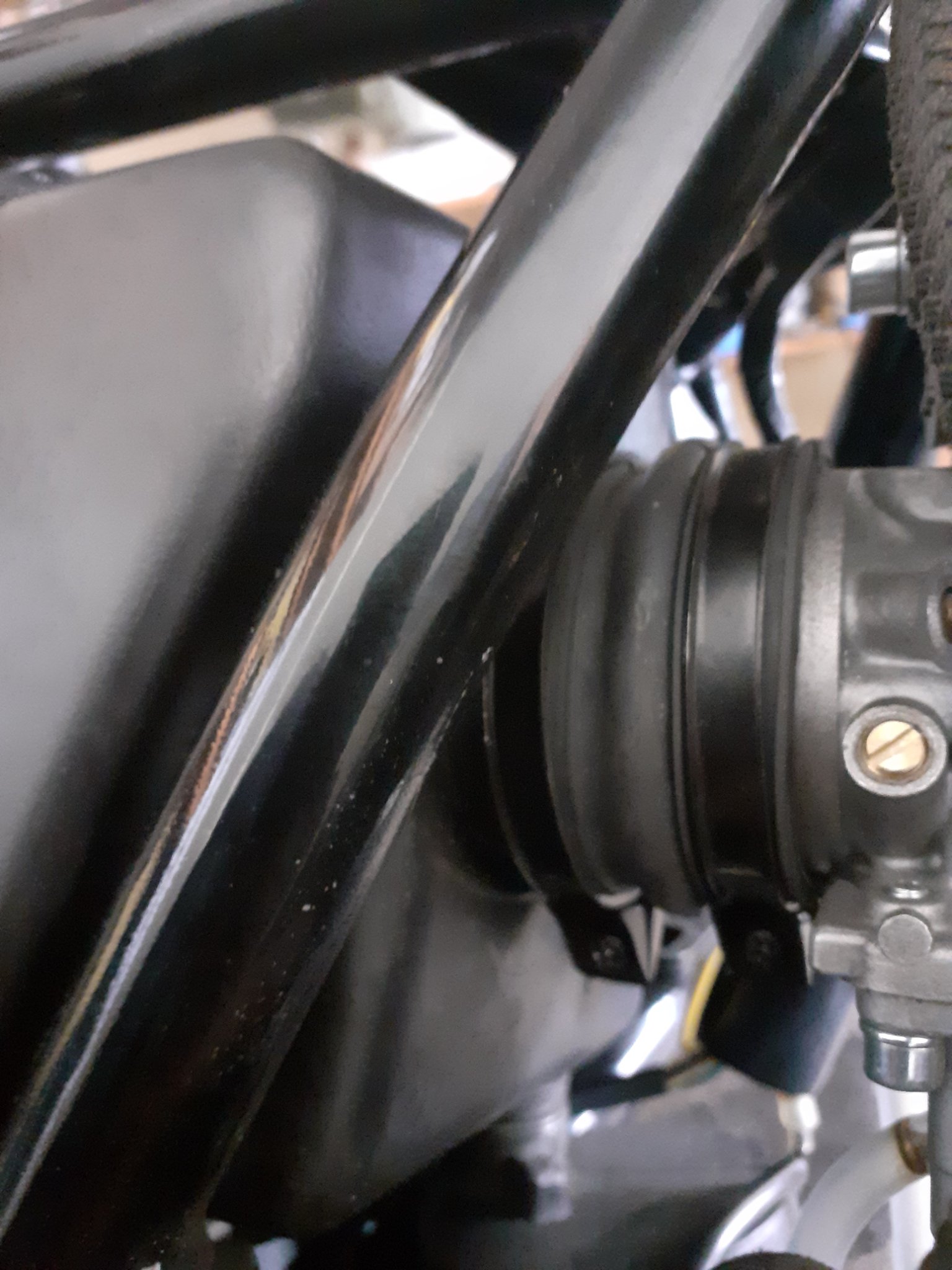 jetzt habe ich es richtig eingebaut aber jetzt passt es am Vergaser nicht 100 % . es Fluchtet nicht richtig so das das Verbindungstück nicht voll auf den vergaserstutzen draufgeschoben werden kann . Ich habe die Schelle ordentlich angezogen und hoffe das alles dicht bleibt .
