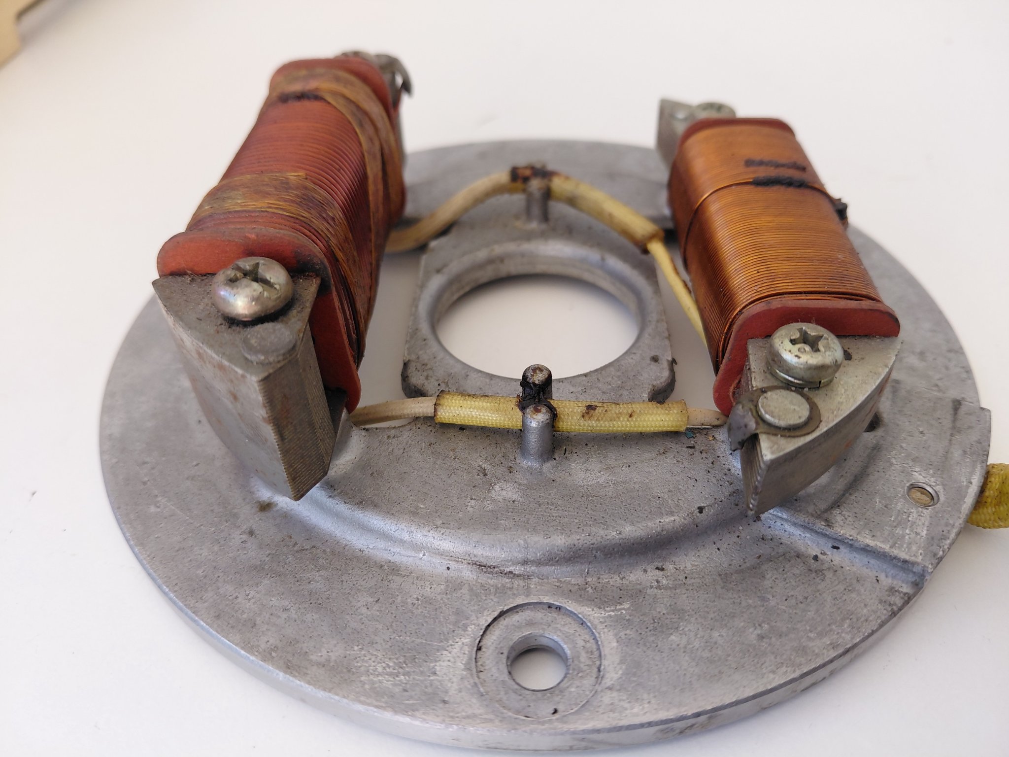 Der Drahtstärke der Lichtspule (rechts) nach, dürfte das die 6V-Lichtmaschine sein, die 12V-Spule besteht aus dünnerem Draht.