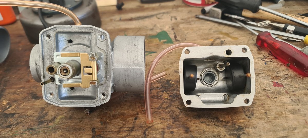 So es geht wieder ein wenig weiter hab mir den Gaser mal vorgeknöpft. Ich hatte ein China Modell gekauft traue Diesem aber nicht daher habe ich die wesentlichen Teile vom originalen Mikuni gereinigt und restauriert. Der sieht jetzt wieder orentlich aus. Ich bin mir noh nicht sicher wg. der Bedüsung aber das kommt später. Hab mir danach noch einen Ultraschall Reiniger gegönnt... Vielleicht zerlege ich den vor der Nutzung nochmal - eigentlich sollten die Kanäle alle sauber sein.