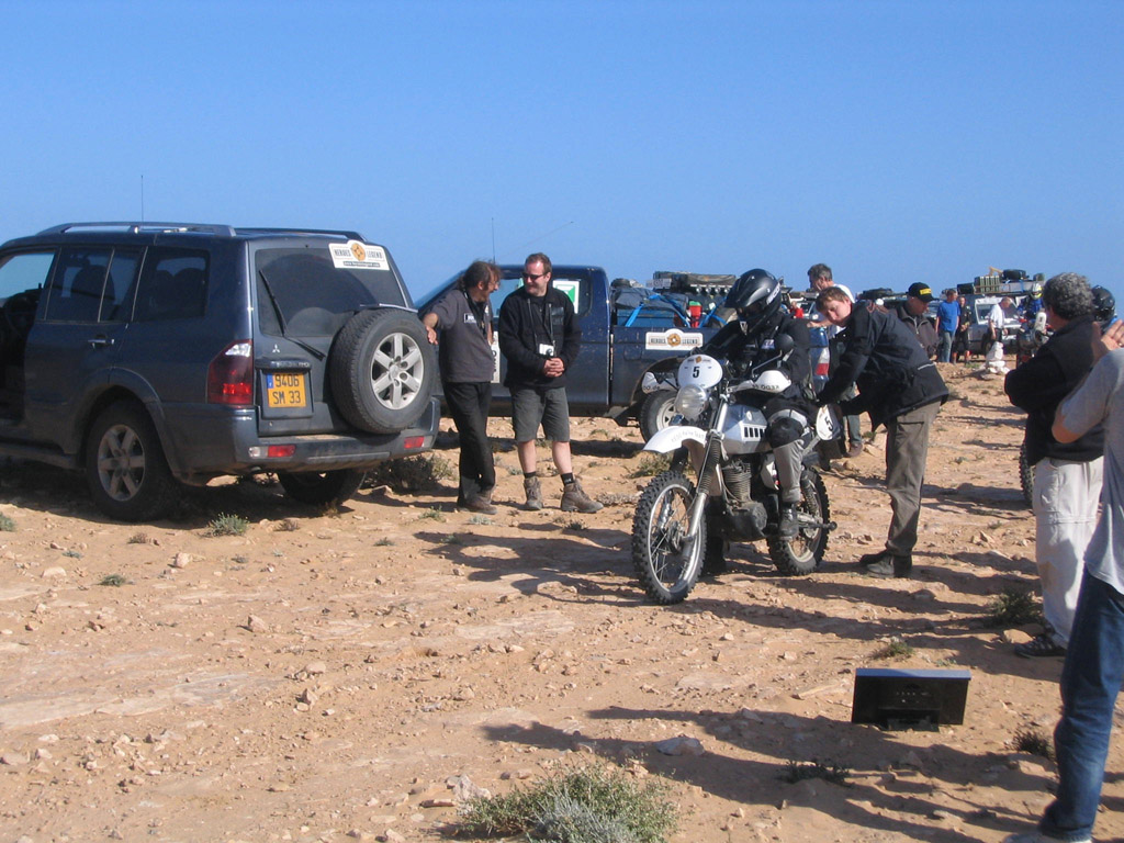 Lutz übernimmt die XT, wir tanken und fahren die 30km zum Beduinen-Camp. Hier hätte man essen und duschen können, aber wir sind irgendwie schon wieder zu spät, also gleich weiter zum Start. 13.30 Uhr starten die XTs wieder im Minutentakt. Die GPS Punkte und das Roadbook für Lutz sind etwas wirr, aber wir hoffen, dass er alles findet. Gleich nach den XTs dürfen die 4x4s auf die Strecke. Zumindest wer will, klar wollen wir.