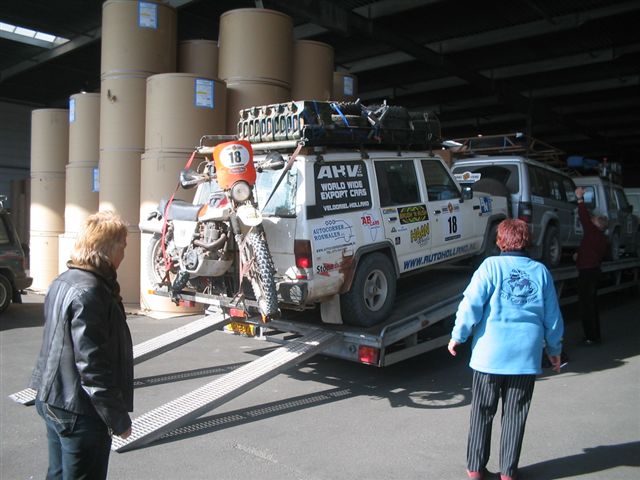 Da ich wenig Lust verspüre mal eben 700km nach Antwerpen zu eiern, frage ich bei Johny von den Patsers in Belgien nach, ob er Landy und XT aus dem Hafen zu sich holen kann. Er hat zufällig frei und es findet sich auch Stef von den Patsers und Michelle aus Frankreich, der Johny in dieser Woche besucht. Zu dritt fahren sie in den Hafen und suchen dort Rouel und Anne Marie auf. Im Prinzip gibt es keine Probleme, nur die grüne Versicherungskarte fällt dem Zoll auf, denn sie ist zeitlich bis zum 20. März begrenzt. Man will Johny nicht mit dem Landy aus dem Hafen fahren lassen. Er ruft mich an und ich erkläre, dass diese Karte nur begrenzt ist, weil sie für Marokko gültig ist, aber das glaubt oder versteht man nicht. Also rufe ich schnell meine Versicherung an, die auch sofort eine Bestätigung nach Antwerpen faxt. Schon ist alles gut und Landy und XT verlassen mit den freundlichen Helfern den Hafen.