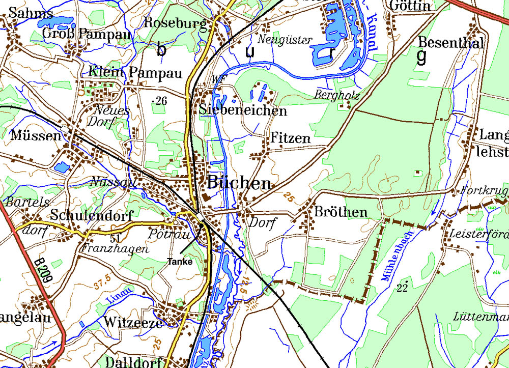 Dann kommst Du von Norden nach Büchen und mußt unter der Bahn durch.